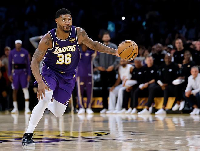 本场比赛中,湖人的先发后场新援马库斯-斯马特(Marcus Smart)的表现算得上是非常突出。斯马特全场出场36分35秒,投篮9中4,三分线外7中3,罚球2中2,得到了13分4篮板6助攻7抢断的全面数据,还有3次失误和1次犯规,正负值也是达到了+15。斯马特在进攻端也算是效率稳定,他也是找到了自己应有的外线投篮手感并且得到了不少分数。斯马特在传球和组织进攻方面也同样能够起到一定的效果,他也能够分担双核肩上的压力。斯马特在进攻端的表现非常可靠,展现出了全面的作用。除此之外,斯马特在防守端的表现更是现象级的,他不断在场上完成抢断,他的防守侵略性十足,他也是有着超强的防守预判能力。斯马特算是很好地扮演了自己的角色,这也为球队的胜利做出了巨大的贡献。