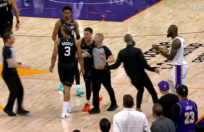 本来太阳队已经完成逆转,落后20分反超湖人了,但是硬生生被裁判吹死了,真的是见都没见过,甚至这还是他们的主场。最后时刻,太阳队由狄龙布鲁克斯投中三分,而且被詹姆斯撞倒在地,这应该是个3+1。